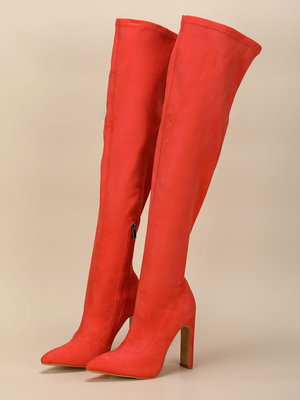 Stivali sopra il ginocchio da donna Stivali alti alla coscia con tacco grosso e punta a punta in micro pelle scamosciata arancioni rossi & Scarpe > Scarpe Donna > Stivali > Stivali sopra il Ginocchio