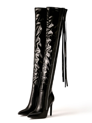 Stivali sopra il ginocchio da donna Stivali alti alla coscia in pelle PU con tacco a spillo e punta a spillo & Scarpe > Scarpe Donna > Stivali > Stivali sopra il Ginocchio ...