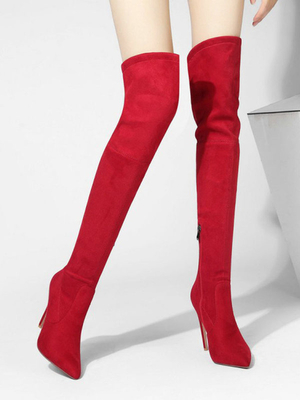 Stivali sopra il ginocchio da donna Stivali alti alla coscia rossi con tacco a spillo e punta a punta & Scarpe > Scarpe Donna > Stivali > Stivali sopra il Ginocchio ...