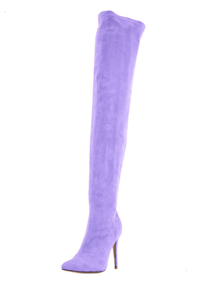 Stivali sopra il ginocchio da donna Tacco a spillo Stivali alti alla coscia neri in micro pelle scamosciata con punta a punta & Scarpe > Scarpe Donna > Stivali > Stivali sopra il Ginocchio ...