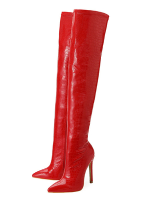Stivali sopra il ginocchio in pelle lucida PU con tacco a spillo da donna & Scarpe > Scarpe Donna > Stivali > Stivali sopra il Ginocchio