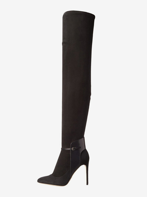 Stivali sopra il ginocchio in pelle scamosciata neri a punta con tacco alto e coscia alta & Scarpe > Scarpe Donna > Stivali > Stivali sopra il Ginocchio ...