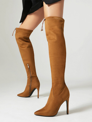 Stivali sopra il ginocchio in pelle scamosciata con punta affilata e tacco alto stivali alti fino alla coscia & Scarpe > Scarpe Donna > Stivali > Stivali sopra il Ginocchio ...