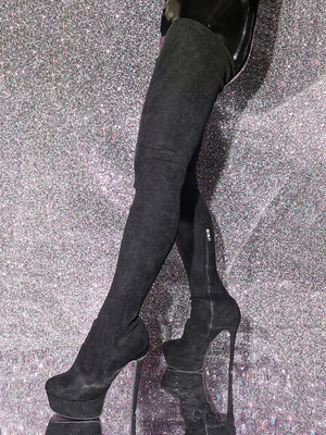Stivali sopra il ginocchio neri da donna stivali alti fino alla coscia con tomaia in micro pelle scamosciata tacco a spillo & Scarpe > Scarpe Donna > Stivali > Stivali sopra il Ginocchio