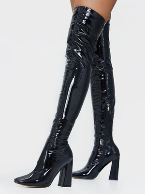Stivali sopra il ginocchio sexy Stivali alti alla coscia in pelle nera con punta quadrata in pelle lucida & Scarpe > Scarpe Donna > Stivali > Stivali sopra il Ginocchio