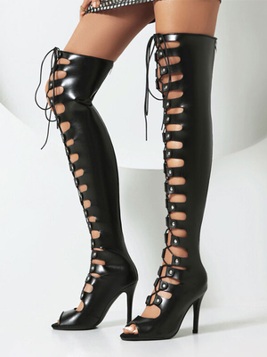 Stivali sopra il ginocchio sexy Stivali sandali con tacco alto con lacci neri & Scarpe > Scarpe Donna > Stivali > Sandali stivali