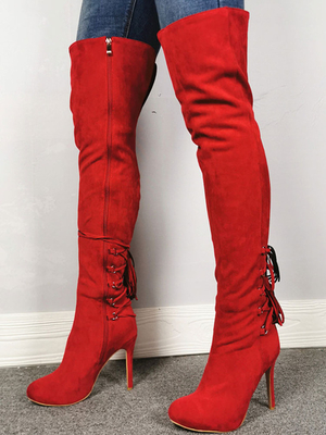 Stivali Sopra Il Ginocchio Stivali Rossi A Punta Con Tacco Alto Con