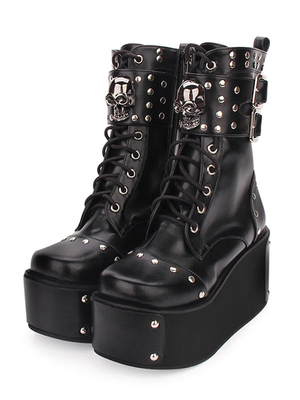 Stivali Steampunk Lolita Calzature Lolita nere con punta tonda in pelle PU & Costumi > Abbigliamento Lolita > Scarpe > Stivali Lolita