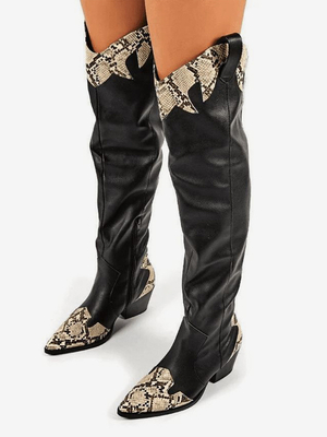 Stivali western neri con punta a punta tacco spesso motivo serpente stivali sopra il ginocchio & Scarpe > Scarpe Donna > Stivali > Stivali sopra il Ginocchio
