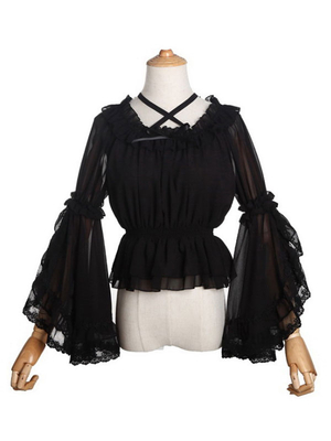 Sweet Lolita Camicette Neverland Lolita Top White maniche lunghe Poms Camicia Lolita con stampa floreale & Vestiti Lolita > Camicette Lolita