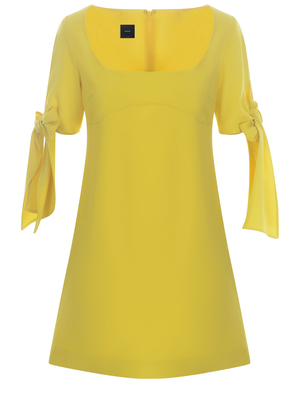 Abito corto Pinko " Verdicchio" realizzato in crêpe stretch di colore Giallo. Maniche corte. Dettaglio fiocco. Scollo squadrato davanti. Linea svasata. Chiusura con zip invisibile al centro sul retro. Foderato. Fodera 64% Acetato, 36% Poliestere 98% Poliestere, 2% Elastan Made in Italy