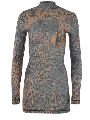 Abito Diesel "D-Eleo" realizzato in maglia stretch di colore Beige. Motivo di colore Grigio. Dettaglio cristalli trasparenti e stampa " Rain Camo" all-over. Collo alto. Maniche lunghe. Sfoderato. Skinny fit.80% Poliammide 20% Elastan