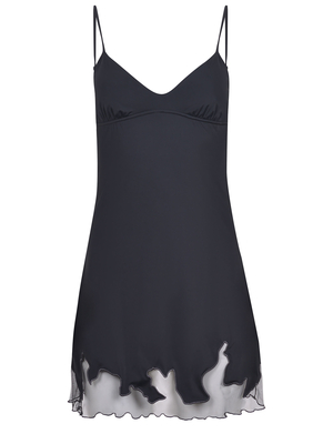 Abito Diesel realizzato in misto nylon di colore Nero. Scollo a V. Spalline sottili regolabili. Fondo in tulle semitrasparente.77% nylon 23% elastene