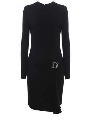 Abito Dsquared 2 realizzato in viscosa di colore Nero. Girocollo. Maniche lunghe. Dettaglio logo "D2" in metallo Argento di lato. Asimmetrico al fondo. Chiusura con zip invisibile sul retro. Slim fit.100% Viscosa Made in Italy
