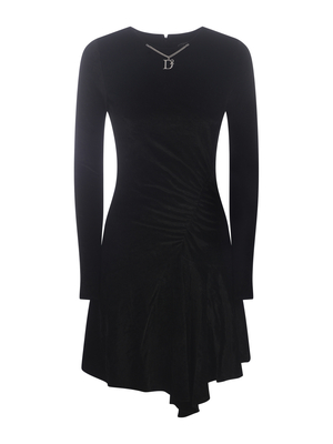 Abito Dsquared2 in velluto di colore Nero. Dettaglio logo "D2" in metallo davanti. Girocollo. Maniche lunghe. Drappeggio e rouche di lato. Chiusura con zip sul retro. 78% Viscosa, 22% NylonMade in Italy