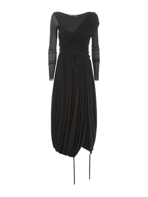 Abito longuette Philosophy realizzato in tulle stretch di colore Grigio. Scollo regolabile in diversi modi. Maniche lunghe. Fasce incrociate. Silhouette bodycon sul bustino. Taglio in vita. Tasche laterali. Chiusura con zip di lato. Coulisse al fondo. 100% Poliammide Made in Ungheria