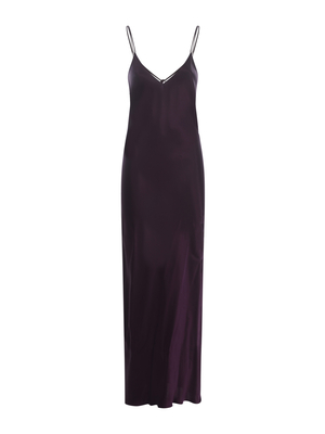 Abito lungo Forte Forte realizzato in raso di viscosa di colore Viola. Doppia spallina sottile. Scollo a punta. Scollo sul retro, spalline incrociate. Non ha chiusure. Linea fluida.58% Acetato, 42% Viscosa Made in Italy
