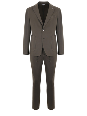 Abito Manuel Ritz in misto cotone Verde militare. Giacca con revers classico, chiusura con 2 bottoni, tasche frontali a toppa, taschino sul petto, tasche interne, polsi con 4 bottoni chiusi, doppio spacco sul retro. Sfoderata. Pantaloni con tasche frontali diagonali, tasche posteriori a filo con bottone. Punto vita elasticizzato con coulisse. Chiusura con zip e gancio, orlo rifinito. Misura in foto 4861% cotone, 36% poliammide, 3% elastene