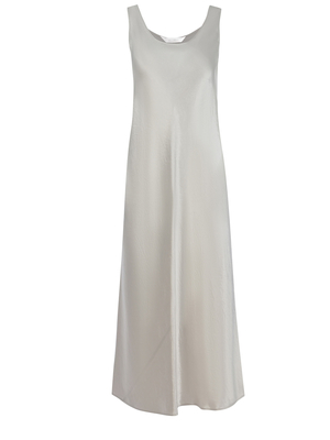 Abito Max Mara Leisure "Telete" realizzato in raso lucido di colore Ghiaccio. Scollo ampio. Spalline larghe. Senza maniche. Linea fluida. Non ha chiusure. 100%AcetatoMade in Italy