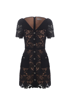 Abito Self-Portrait realizzato in pizzo floreale di colore Nero. Scollatura con colletto aperto. Maniche corte. Maniche con orlo. Bottoni " Gioiello" davanti. Cintura abbinata, rimovibile. Tasche applicate di lato. Completamente foderato. Chiusura con zip, sul retro. Fit aderente. 100% Poliestere UK 6