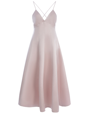Abito Philosophy realizzato in duchesse di colore Rosa. Spalline sottili. Scollo a V. Vita aderente. Gonna ampia, svasata. Tasche laterali. Chiusura con zip laterale. Spalline incrociate sul retro. Fodera in raso. 100% Poliestere