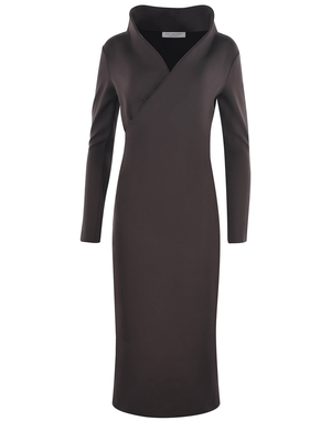 Abito Philosophy in nylon Marrone. Modello midi. Elasticizzato. Chiusura laterale con zip nascosta. Scollo a V con risvolto. Maniche lunghe. Foderato.87% poliammide 13% elastene