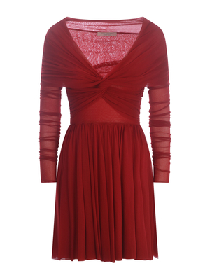 Abito Philosophy realizzato in tulle di colore Rosso. Scollo morbido. Maniche lunghe, extra-long semitrasparenti. Dettaglio torchon davanti. Taglio in vita. Gonna morbida e svasata. Tight fit. 100% PoliammideMade in Ungheria