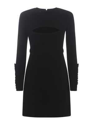 Abito Pinko " Arale" realizzato in tessuto tecnico di viscosa stretch di colore Nero. Girocollo. Maniche lunghe. Dettaglio rouches alle maniche, sul petto. Scollo, cut-out. Chiusura con zip, invisibile sul retro. Slim fit. Primo tessuto 50% Viscosa, 42% Poliammide, 8% Elastan 90% Poliestere, 10% Elastan Made in Italy