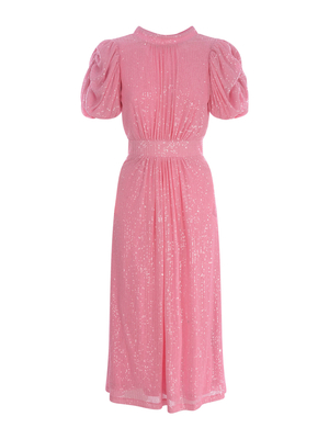 Abito Rotate in micropailettes di colore Rosa. Girocollo. Maniche a sbuffo. Taglio avvitato. Gonna morbida. Scollo ovale sul retro. Chiusura sul retro con doppio fiocco. 100% Polyestere RiciclatoMade in China