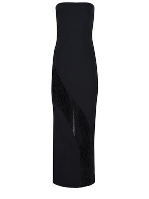 Abito Rotate realizzato in jersey di colore Nero. Designer lungo a tubino. Dettaglio in rete, 3D. Scollo dritto. Senza maniche. Chiusura con zip, sul retro. Tirazip con logo "R". Spacco sul retro. Foderato. Fit Aderente. Fodera 100% Poliestere 82% Poliammide, 18% Elastan Scala taglie francese FR 36 38 40IT 40 42 44