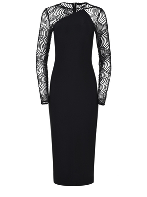 Abito Rotate realizzato in jersey di colore Nero. Designer midi. Dettaglio in rete, 3D. Girocollo. Maniche lunghe. Chiusura con zip, sul retro. Tirazip con logo "R". Spacco sul retro. Foderato. Fit aderente. Fodera 100% Poliestere 82% Poliammide, 18% Elastan Scala taglie francese FR 36 38 40IT 40 42 44