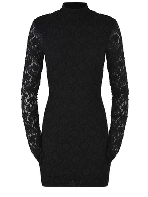 Abito Rotate realizzato in pizzo di colore Nero. Collo alto. Maniche lunghe. Maniche in pizzo, trasparente. Chiusura con zip, sul retro. Tirazip con logo "R". Foderato. Fit aderente. Fodera 97% Viscosa, 3% Elastan 50% Poliammide, 40% Cotone, 10% Elastan Scala Taglie Francese FR 36 38 40IT 40 42 44