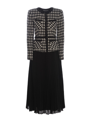 Abito Self-Portrait realizzato in bouclé a quadri Nero. Girocollo. Maniche lunghe. Tasche applicate sul petto. Chiusura con bottoni automatici nascosti. Tasche applicate di lato. Cintura regolabile abbinata, di colore Nero. Gonna plisse di colore Nero. La giacca e la gonna, sono staccabili, possono essere utilizzati separatamente. Foderata. Fodera 100% Poliestere Cintura 100% Poliestere Parte superiore 90% Poliestere, 5% Lana, 3% Fibra Metallizzata, 1% Viscosa, 1% Altre fibre Parte inferiore 100% Poliestere Made in China Scala Taglie UK 8