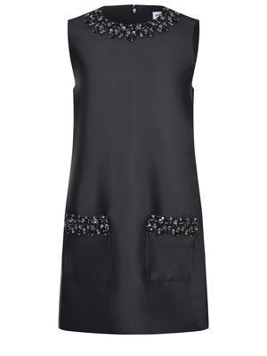 Abito Self-Portrait realizzato in poliestere di colore Nero. Girocollo con dettagli gioiello Argento e Nero. Senza maniche. Tasche frontali con applicazioni di strass. Chiusura con zip sul retro. Foderato.100% poliestere