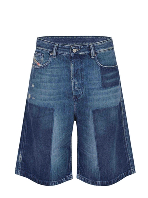 Bermuda Diesel " De-Sire" realizzati in denim di colore Blu. Stone wash. Chiusura con bottoni. Passanti per cintura. Cinque tasche. Strappi sul davanti e sul retro. Dettagli a contrasto. Etichetta logo color Cuoio cul retro.64% cotone 36% lyocell