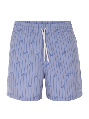 Bermuda GCDS realizzato in poliestere di colore Celeste. Elastico in vita con coulisse. Tasche laterali. Taschino sul davanti in vita. Motivo gessato di colore Blu. Lettering logo all-over. Tasca con patta sul retro.100% poliestere