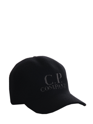 Berretto C.P. Company in lana a costine Nero. Visiera rigida. Logo intarsiato. Sfoderato.100% lana