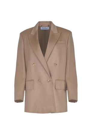 Blazer Max Mara " Olimpia" realizzata in cammello di colore Cammello. Doppiopetto. Leggero cammello leggero zibellinato. Collo rever a lancia. Maniche con bottoni sul fondo. Chiusura con quattro bottoni a vista. Taschino sul petto e tasche con patta applicata sul davanti. Doppio spacco sul retro. Foderato.100% cammello Made in Italy