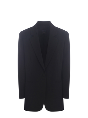 Blazer Pinko " Esagerata" realizzata in crêpe stretch di colore Nero. Linea dritta. Collo con rever. Spalle costruite. Maniche lunghe. Monopetto. Chiusura con un unico bottone. Tasche a filo laterali. Foderata. Fodera 67% Acetato, 33% Poliestere 98% Poliestere, 2% Elastan Made in Italy