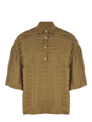 Blousa Alysi in viscosa Verde militare. Collo a camicia. Motivo a rilievo. Chiusura bottoni sul davanti. Maniche corte ampie.100% viscosa