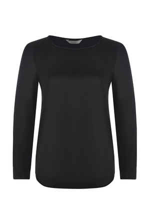 Blusa Max Mara Leisure "Moldava" realizzata in raso di pura seta di colore Nero. Scollo ampio. Maniche lunghe. Linea fluida. Spacchetti laterali.93% Seta, 7%ElastanMade in Italy