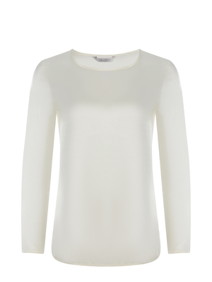 Blusa Max Mara Leisure " Moldava" realizzata in raso di pura seta di colore Bianco. Scollo ampio. Maniche lunghe. Linea fluida. Spacchetti laterali.93% Seta, 7% Elastan Made in Italy