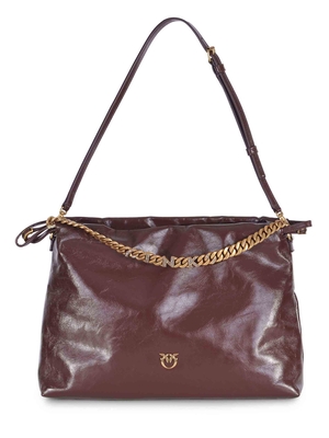 Borsa maxi pouch Pinko " Chain Handle" realizzata in pelle naplak di colore Bordeaux. Logo " Love Birds Diamond Cut" applicato in metallo Antique Gold davanti. Chiusura con coulisse, laterali. Interno foderato in microfibra. Tasca a parete con zip. Doppio manico. Manico a catena, lettering " Pinko" con strass. Manico in pelle, regolabile e rimovibile con moschettoni. Logo " Love Birds Diamond Cut" ricamato tono su tono sul retro. Misure Altezza 29cm, Larghezza 8cm, Lunghezza 36cm Fodera 100% Poliestere 100% Pelle