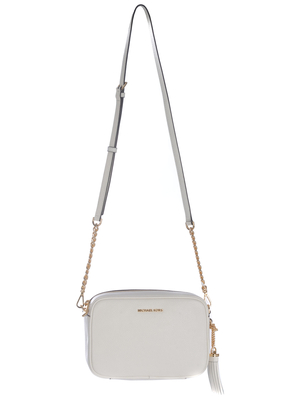 Borsa Michael Kors " Camera Bag" realizzata in pelle martellata di colore Bianco. Inserti in metallo Dorato. Lettering logo " Michael Kors" in metallo Dorato, davanti. Chiusura con zip, superiore. Interno foderato. Tasca a parete interna. Dettaglio " Nappina" pendente. Tracolla combina spallaccio in pelle, catena in metallo Dorato. Tracolla regolabile, rimovibile. Misure: Lunghezza 21cm, Altezza 14cm, Profondità 5.7cm Fodera 100% Poliestere 100% Pelle