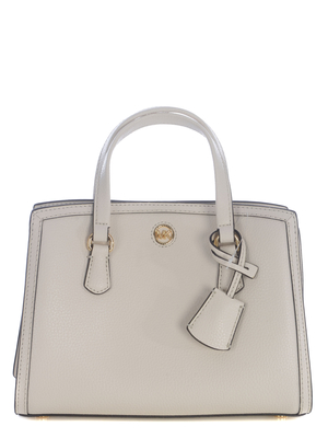 Borsa Michael Kors " Chantal" realizzata in pelle martellata di colore Crema. Inserti in metallo Dorato. Due manici superiori. Logo "MK" in metallo Dorato frontale. Interno foderato. Due scomparti, scomparto centrale con zip. Tracolla combina spallaccio in pelle e catena Dorata, regolabile e rimovibile. Larghezza 26cm, Altezza 20.3cm, Profondità 11.4cm Manico 8.9cm Fodera 100% Poliestere 100% Pelle