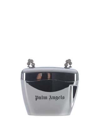 Borsa Palm Angels rigida Argento. Stampa logo " Palm Angels" in Nero sul davanti. Chiusura con pattina nella parte superiore e scomparto unico. Tracolla con catena di sfere. Altezza 15cm, Larghezza 18cm, Profondità 7cm, Tracolla 55cm 100% Polipropilene