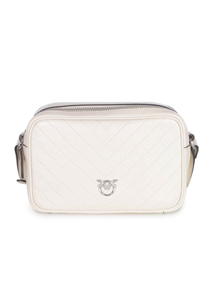 Borsa Pinko " Carrie Camera" realizzata in pelle di colore Crema. Texture wrinkle, leggermente increspata, e trapuntatura con pattern chevron. Tracolla regolabile e removibile in pelle. Due tasche con chiusura zip. Logo Love Birds in metallo Argento. Altezza: 13 cm Larghezza: 8, 5 cm Lunghezza: 20, 5 cm 100% pelle
