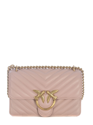 Borsa Pinko " Love One Mini" realizzata in nappa trapuntata con motivo chevron di colore Rosa Cipria. Chiusura con iconica fibbia " Love Birds Diamond Cut" in metallo Dorato, lettering " Pinko" inciso. Interno foderato, in microfibra scamosciata. Tasca interna a parete. Tasca con zip. Logo " Love Birds" ricamato tono su tono sul retro. Tracolla combina spallaccio in pelle regolabile, catena in metallo Dorato. Misure: Altezza 12cm, Larghezza 7cm, Lunghezza 21cm 100% Pelle