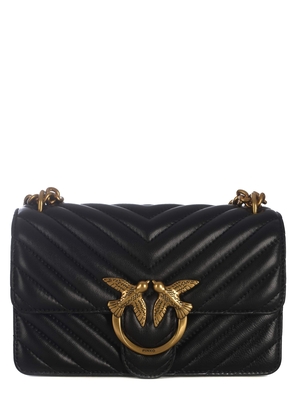 Borsa Pinko " Mini Love One Chevron " realizzata in nappa di colore Nero. Motivo chevron. Chiusura con iconica fibbia " Love Birds Diamond Cut" in metallo Dorato, lettering " Pinko" inciso. Interno foderato in microfibra. Tasca a parete. Tasca con zip. Tracolla combina catena in metallo rotonda, spallaccio in nappa. Logo " Love Birds Diamond Cut" ricamato tono su tono sul retro. Misure Altezza 12cm, Larghezza 7cm, Lunghezza 21cm Fodera 100% Cotone 100% Pelle