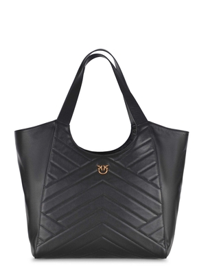 Borsa shopping Pinko " Puzzle" realizzata in morbida pelle di colore Nero. Motivo trapuntato chevron. Inserti in metallo Dorato. Logo " Love Birds Diamond Cut" realizzato in metallo Antique Gold, lettering " Pinko" inciso. Doppio manico. Interno foderato. Tasca a parete con zip. Logo " Love Birds Diamond Cut" ricamato tono su tono sul retro. Misure Altezza 42cm, Larghezza 15cm, Lunghezza 36cm Fodera 100% Cotone 100% Pelle
